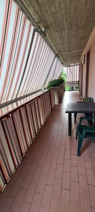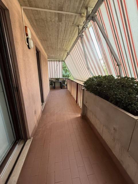 Tutti gli ambienti affacciano su un ampio balcone, ideale per momenti di relax all'aperto.